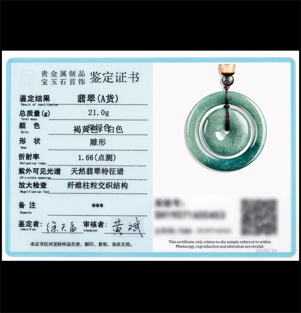 Certification from 3rd party authority to verity as Grade A Natural Jade.