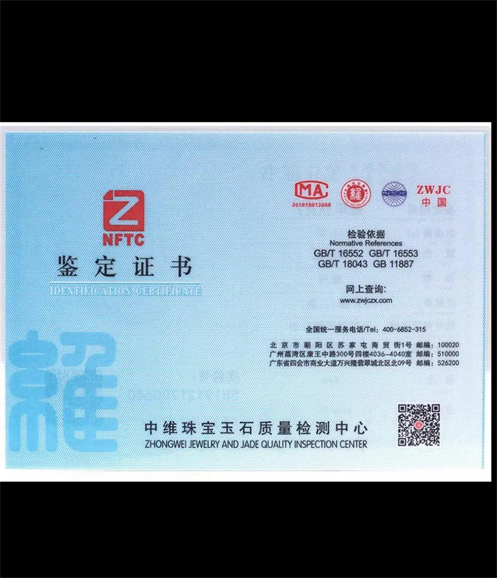 Certification from 3rd party authority to verity as Grade A Natural Jade.